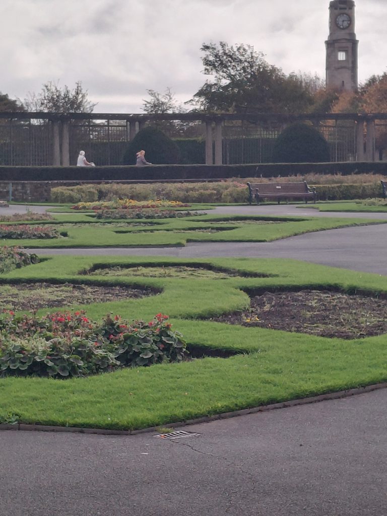 It is good to see that a pattern of flower beds is retained to this day (unlike in most municipal parks), the photo above showing some after the summer blooms had been removed.