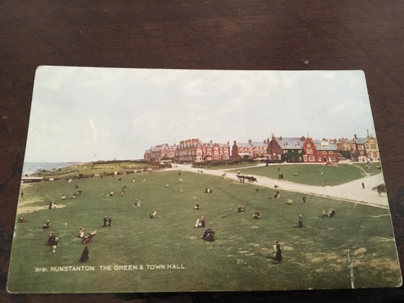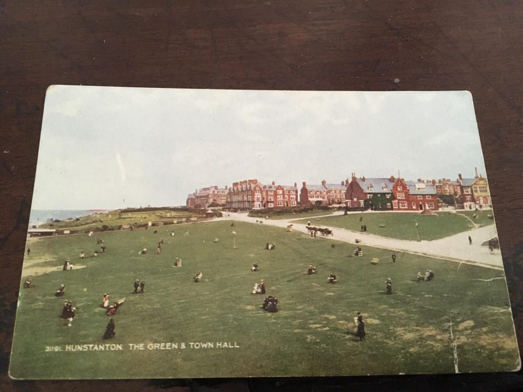 Today’s photo is taken from n old postcard showing the ‘Green’ (surviving) and buildings to the north, most of which survive. The local red brick reflects the iron content of the local topsoil clays as do the cliffs seen in the previous blog. Beyond the Green are the municipal gardens, more horticulturally interesting now than then. These gardens and the green sward beyond stand at the top of the cliffs seen in the previous blog.