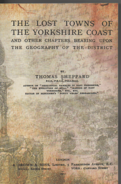Above is the cover page of a reprinted book first published in 1912. The author ‘Tom’ Sheppard was the first curator of Hull Museums located on Albion Street in a large building, never rebuilt after being bombed in 1943. A large volume of the exhibits were also destroyed, for example the long log dug-out canoe, thought to be Neolithic or earlier, found in the anaerobic muds of the River Ancholme in the early 20th century (maybe 1890s).