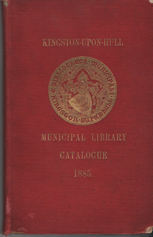 The Municipal Library Catalogue of 1885 cost 50p. from the ‘no longer needed’ shelf at Hull History Centre. The central coat of arms shows the three crowns/coronets in the shield and the outer words read ‘Bibliotheca Municipali, Kingston Super Hull’. The list includes some familiar titles, e.g. Poulson, George History and Antiquities of the Seigniory of Holderness, 2vols, 1840-’41, Frost, Charles Notices of Town and Port of Hull, 1827. Also, Sheahan, J.J. History of the Town and Port of Kingston-upon-Hull.